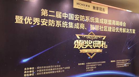 2017年8月26日,由深圳市安全防范行业协会主办,中国安防系统集成科技创新产业联盟承办,深圳市麦驰物联股份有限公司独家冠名的“第二届中国安防系统集成联盟高端峰会暨优秀安防系统集成商、智慧社区建设优秀解决方案颁奖典礼”在深圳市深航国际酒店盛大开幕。深圳市安全防范行业协会党委书记、会长杨金才先生出席此次会议;深圳市麦驰物联股份有限公司董事长沈卫民先生在内的众多业内优秀企业代表也出席了此次会议。